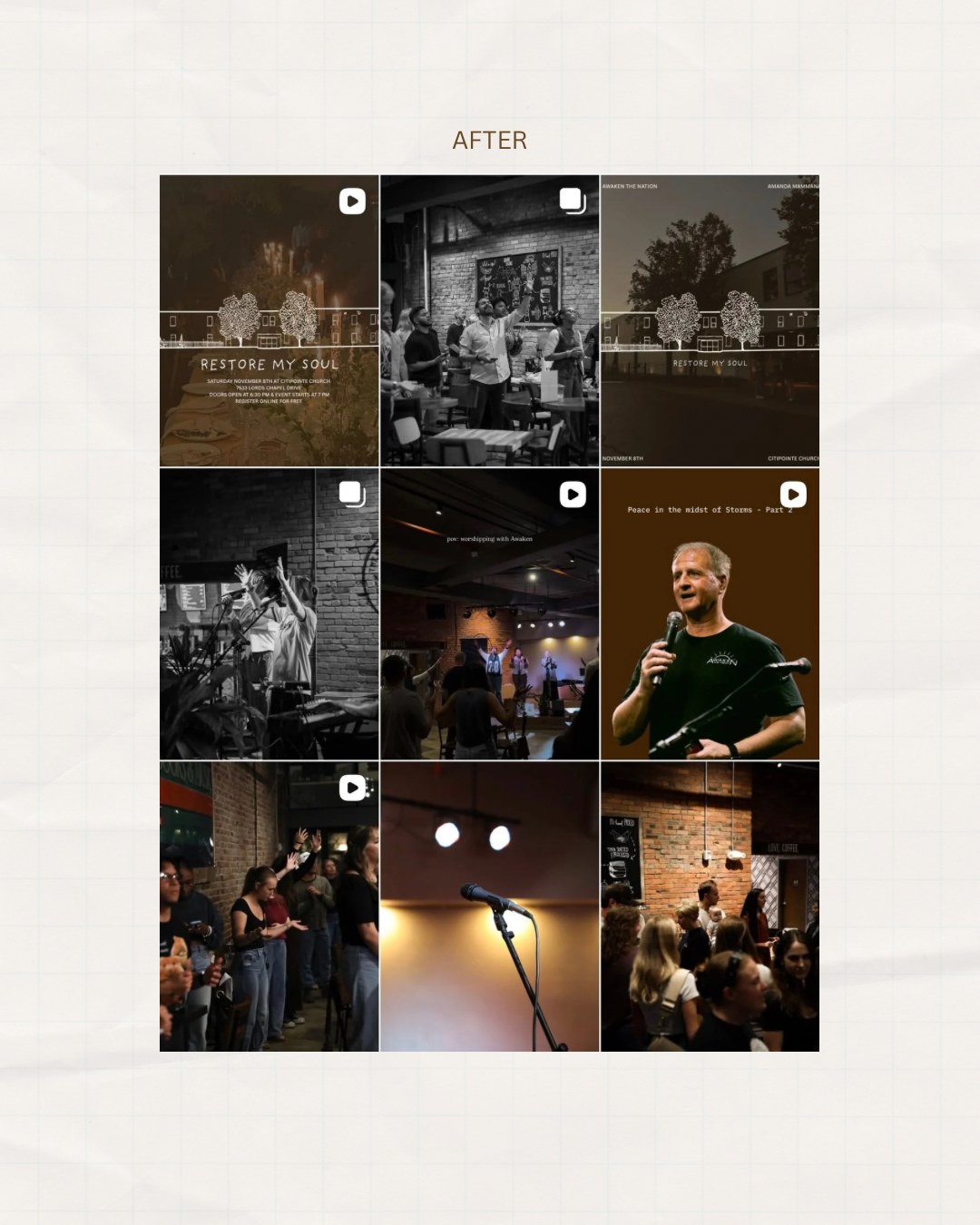 Their social feeds had no branding cohesion in color, font, style, etc. There were no photos capturing what their events were about. A heavy overuse of text on screen, oversaturated Canva graphics, and no promotional materials for events.